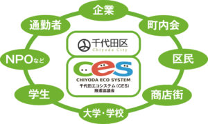 一般社団法人千代田エコシステム推進協議会は、 千代田区独自に構築された環境配慮行動(CES)の普及・促進を目的に設立された会貝制組織。2008年から活動を続けています