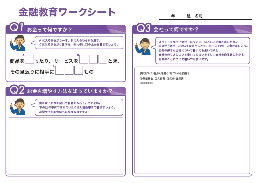 子ども用 金融教育ワークシート抜粋
