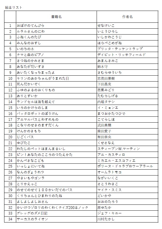 寄贈された絵本リスト